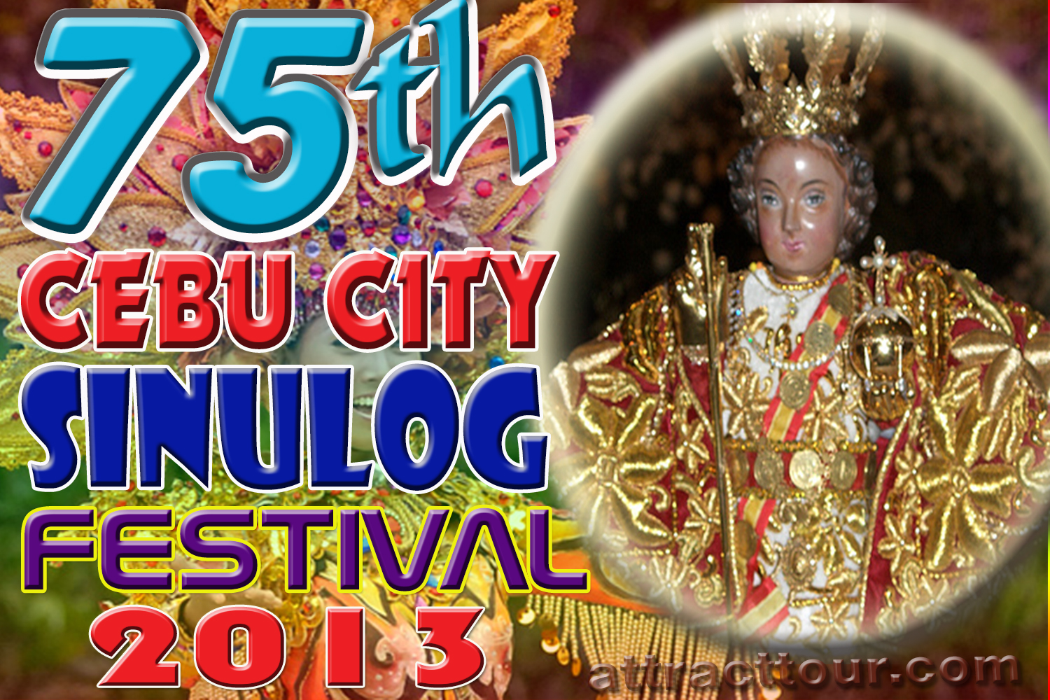 Sinulog Festival 2013 in Cebu City is the most celebrated festivity in the whole Philippines that causes massive attraction both domestic and foreign visitors. On the day of celebration the heart of the city is flooded with thousands of people specially those streets near the Basilica del Santo Niño church where the Child King is being placed for dwelling. The long procession of Santo Niño passing in different streets of the city is one of the reasons for the massive increase of people coming to join the parade to fulfill their vows.