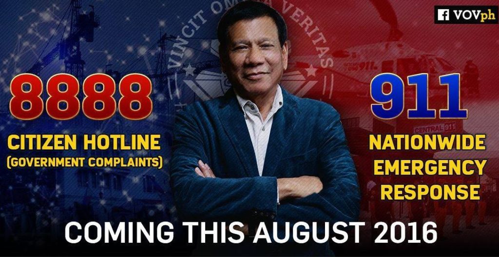 President Duterte announce earlier that the administration is setting up a complaint office, 24 hours, manned by 10 operators, covering the entire country. The number will be 8888. Filipino people can report on him anytime and there will be a manager who will redirect and complaint to the proper office.