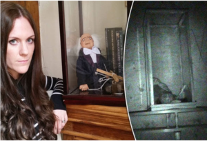 And last month she was left dumbfounded what her cameras caught, the chilling moment the wooden doll what seems came back to life. Night vision footage shows the puppet’s operating crow slowly moving on its own before crashing into one of the sealed glass frame.