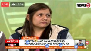 Aired by Raffy Tulfo in action. OFW was mistreated and molested by her employer and because of the video she uploaded on Facebook which can be seen how she was molested, became viral on social media. Her husband saw the video and immediately he reported the case to TV 5. on Tuesday, December 5, 2017.