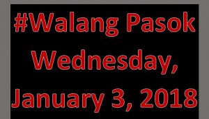 Here are the list of areas and schools who are subject for class suspension on Wednesday, January 3, 2018.