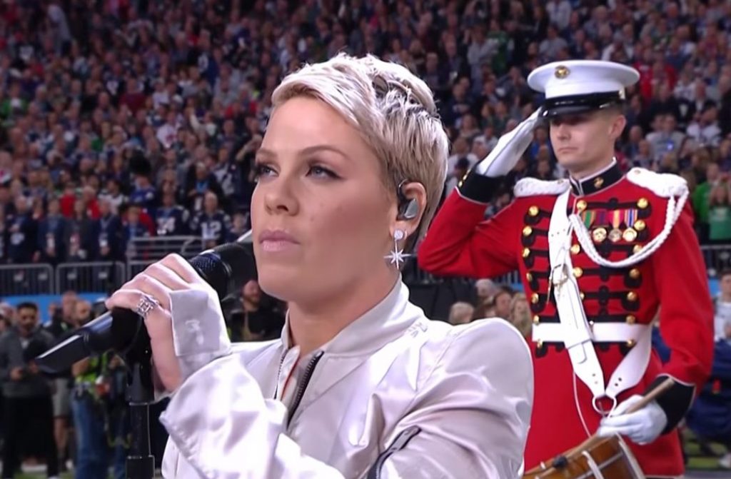 You can now watch Pink sings the National Anthem during Super Bowl 52 on Sunday, February 4, 2018. Pink opened the Super Bowl 2018 “Philadelphia Eagles vs New England Patriots” match by singing The Star-Spangled Banner at the US Bank Stadium in Minneapolis, Minnesota last Sunday, February 4, 2018.
