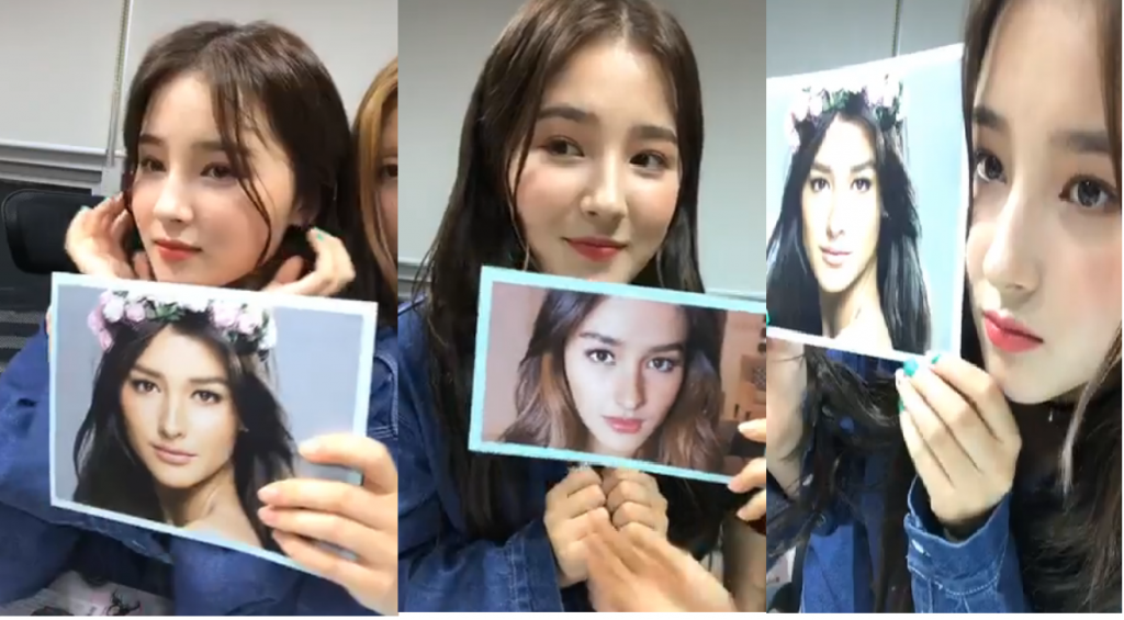 Nancy Jewel McDonie from the South Korean all-girl group Momoland mimicks Liza Soberano’s poses. Momoland members are Nancy, Daisy, Hyebin, Yeonwoo, Jane, Nayun, JooE, Ahin and Kim Taeha. Momoland official Facebook, Nancy with Daisy mimicks Liza Soberano poses.