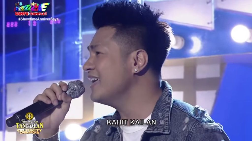 Tawag Ng Tanghalan Celebrity Champion episode on October 15, 2019 winner is RJ Dela Fuente who sang “Kahit Kailan” got an average score of 92 %. Tawag Ng Tanghalan aired every Monday to Saturday Noon on ABS-CBN show “Its Showtime”.