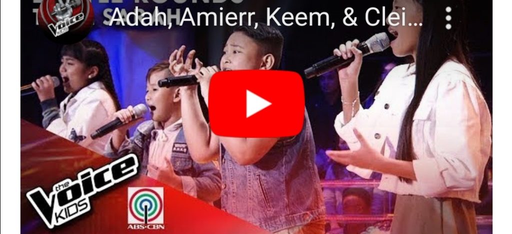 The voice kids battle rounds Team Sarah showcase the singing clash of Adah, Ameir, Keen and Cleia. During the rounds the four aspiring young singers sing their coach hit “Tatsulok”.