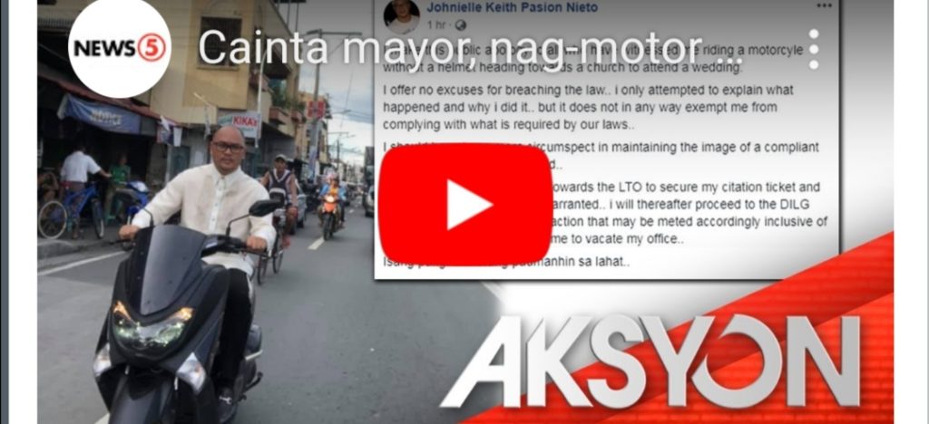 Trending now in social media is a certain Mayor in Cainta seen driving a motorcycle without a a without a helmet.