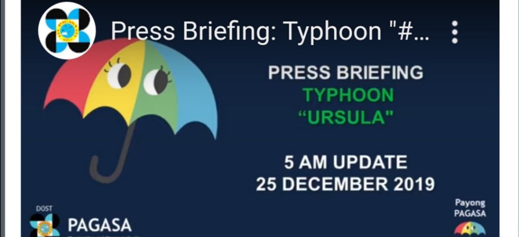 Watch livestream of Pagasa update of Typhoon Ursula as of 5am December 25, 2019.