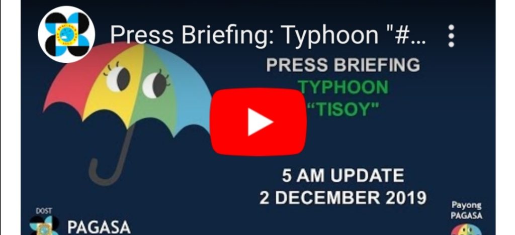 As a part of early warning protocol DOST PAGASA release a specific press breifing of the places where typhoon Tisoy will hit specially on the Bicol region, Leyte part of Central Luzon and Camarines Area.