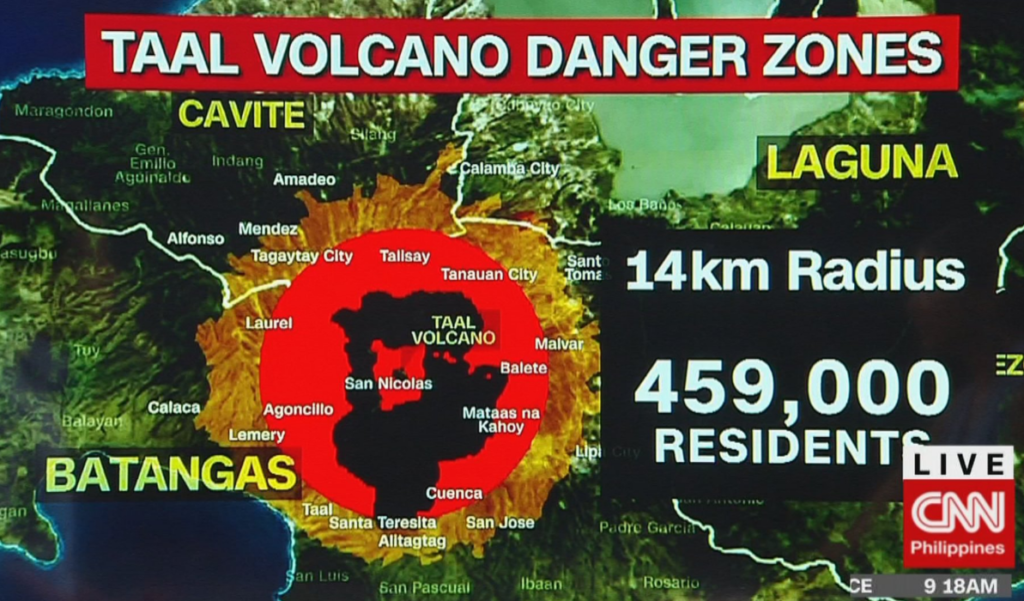 Alert Level 4 still remains in effect over Taal Volcano. This means that hazardous explosive eruption is possible within hours to days. DOST-PHIVOLCS strongly reiterates total evacuation of Taal Volcano Island and high-risk areas as identified in the hazard maps within the 14-km radius from Taal Main Crater and along the Pansipit River Valley where fissuring has been observed.
