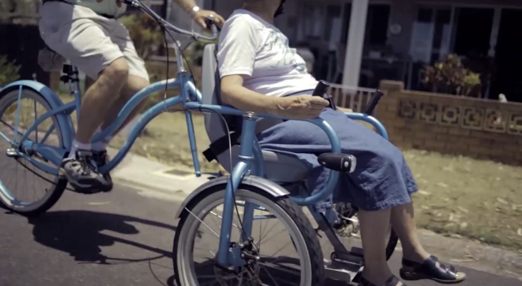 Bill designed the ‘bike chair’ and then took it to a friend to turn his invention into reality. Now, they enjoy looking at the beautiful views outside whenever they take their bike, just like the old times. Their love story has been an inspiration to us.