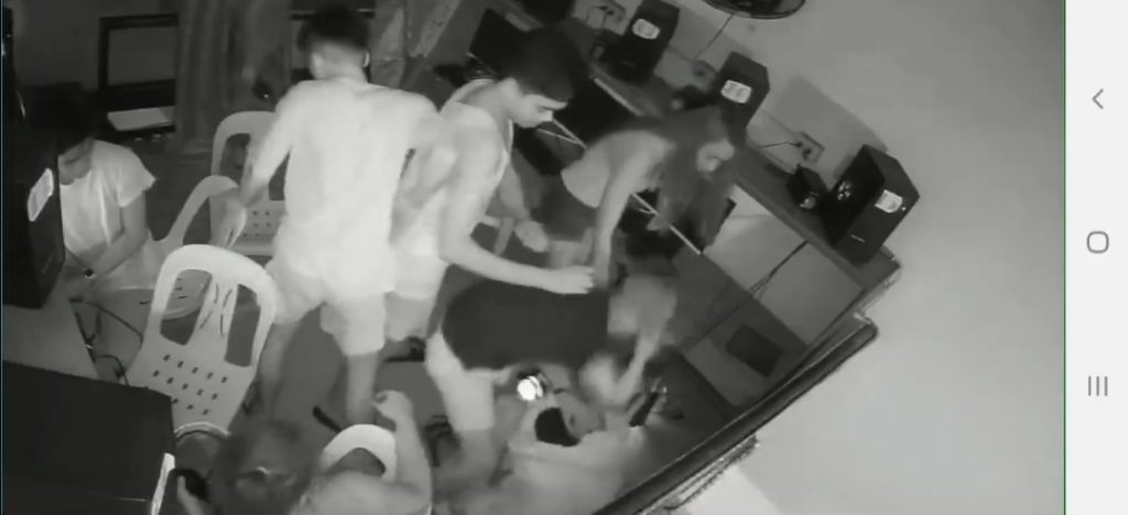 In a certain post of a concern netizen which states a group of men under the influence of alcoholic drinks and marijuana goes to a comp shop and confronted a guy in whip hoody in Brgy. San Vicente Laguna, it is seen in the video that the boy cannot stand and almost lost consciousness but still the two beats him and even does not recognize to have pity on him.