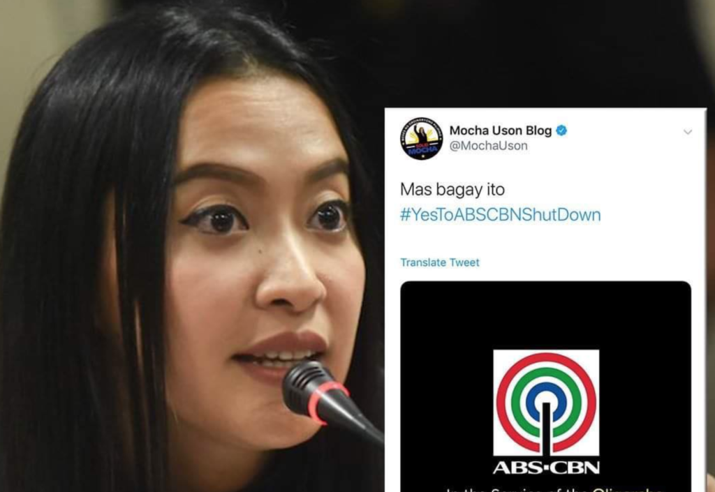 Esther Margaux “Mocha” Justiniano Uson reacts to ABS-CBN “Draft Posts” over Metro Manila lockdown on Thursday, March 12, 2020. On her Official Facebook Page, Uson stated “You trolls were so happy when I erroneously mentioned La Trinidad Baguio, but you are so quiet on this grave mistake done by ABSCBN that may cause mass panic. #HYPOCRITES“
