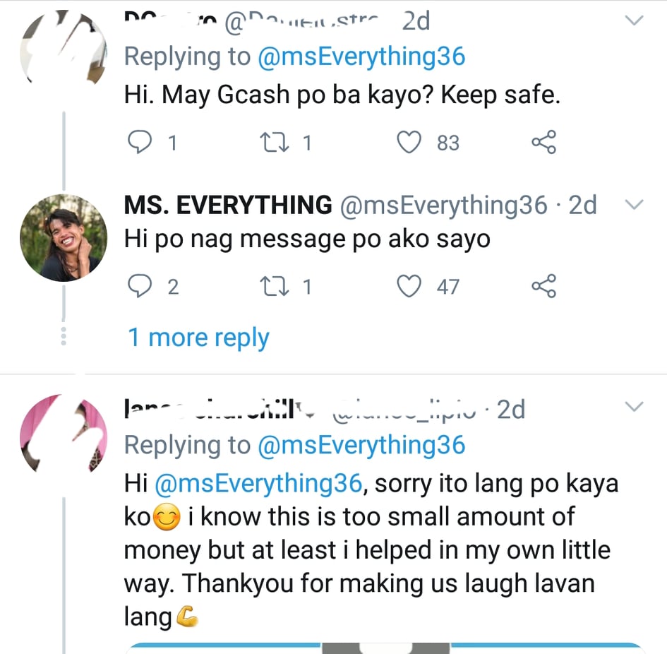 Some netizens also helped her via GCash.