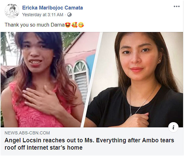 On May 17, Ms. Everything thanked Angel through Facebook. “Thank you so much Darna [kisses and hearts emojis]” Ms. Everything’s caption.