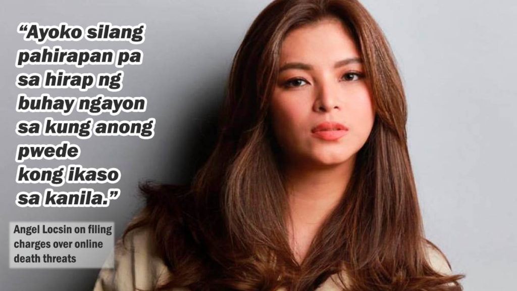 Kapamilya actress Angel Locsin expressed thankfulness to the National Bureau Investigation (NBI) for taking action in response to her Twitter post seeking the assistance from authorities in connection to the online death threat to her and other Kapamilya artists including Coco Martin and Kim Chiu.
