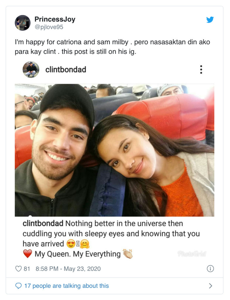 Netizens found out that even after Clint and Catriona have broken up, pictures of her and them together can still be spotted in his Instagram. Some netizens tweeted saying that they are happy for the new couple however sad for Clint as she was his greatest love.