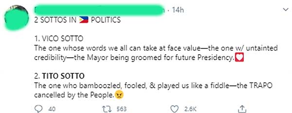 He was also compared to his nephew, Vico Sotto saying that “You will never be like your pamangkin.”