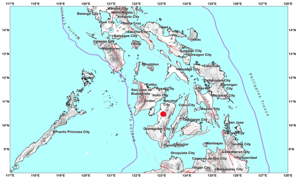 The location of the quake, 10.47°N, 123.06°E – 016 km N 73° E of La Carlota City (Negros Occidental), and the Depth of Focus (Km) is 013. There are no casualties that have been damage.