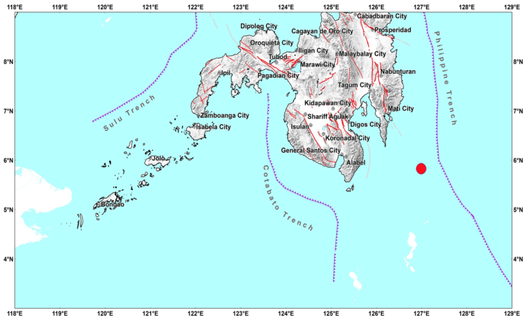 The location of the quake, 05.82°N, 126.99°E – 136 km S 48° E of Governor Generoso (Davao Oriental), and the Depth of Focus (Km) is 010. There are no casualties that have been damage.