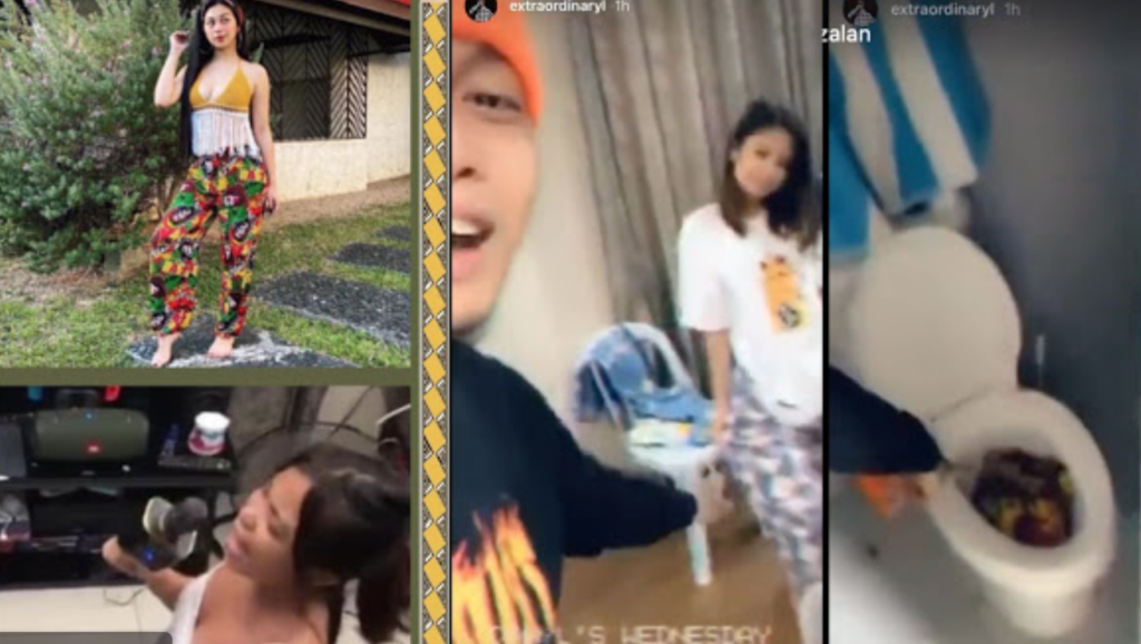 According to some Netizens, they’re fighting over this “pajama” of Zeinab that Ryssi wore then look at Skusta Clee’s IG story he showed that Ryssi changed her pajamas already then, he said “oh ito ba iniyakan mo?” He throws Zeinab’s pajamas into the toilet bowl.