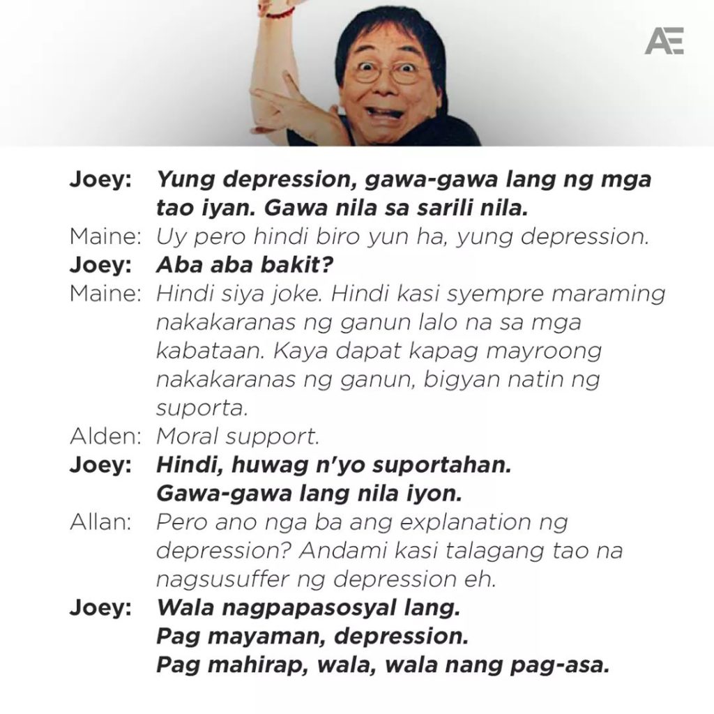 Joey said “young depression, gawa gawa lang ng mga tao yan” (depression is just a makeup thoughts by people).
