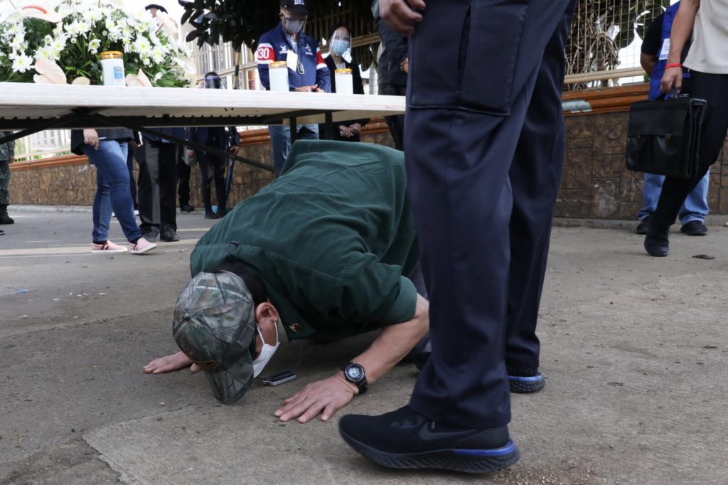 The photo of President Duterte where he bow down and kiss the ground wearing face mask was first shared by Senator Christopher “Bong” Go on his social media account.