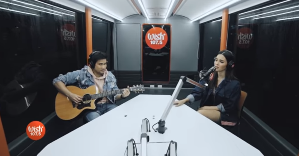Catriona Gray, the Miss Universe 2018 performed with her showbiz boyfriend Sam Milby, the song entitled “We’re In This Together” on Wish 107.5 Bus.