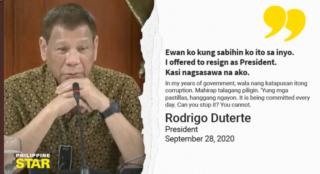 In my years of government, wala nang katapusan itong corruption. Mahirap talagang piligin. ‘Yung mga pastillas, hanggan ngayon. It is being committed every day. Can you stop it? You cannot.”