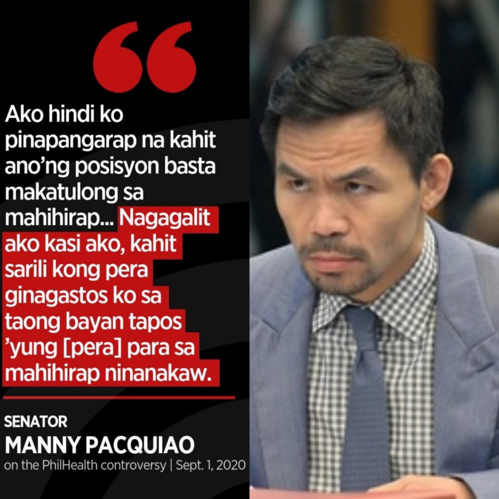 Senator Manny Pacquiao expresses anger and gives statement regarding the alleged corruption happening in PhilHealth.