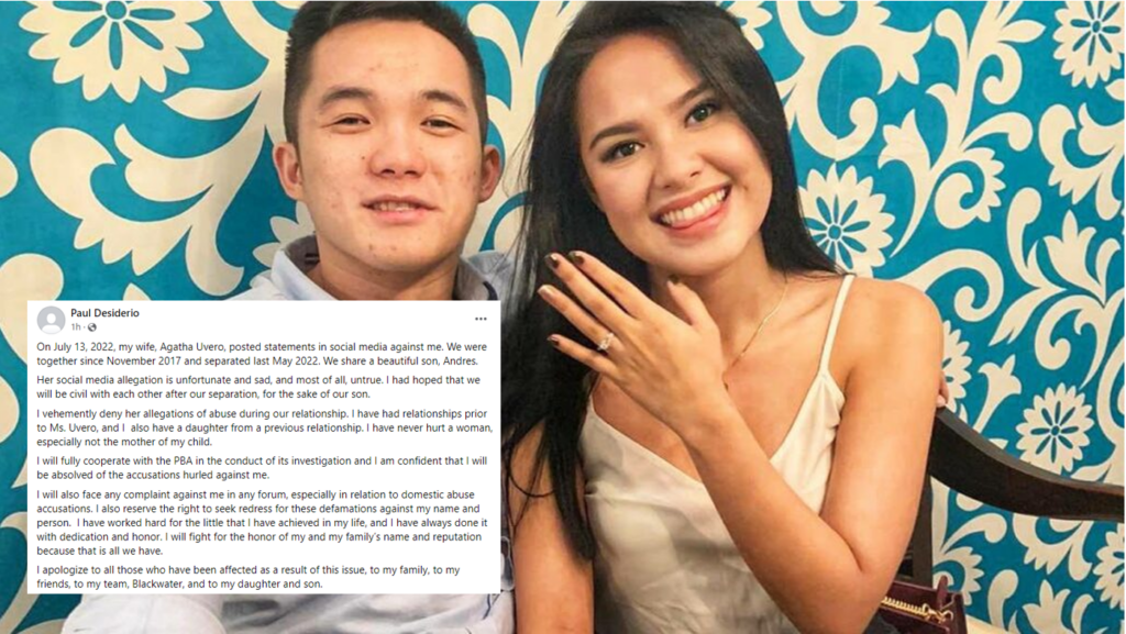 Paul Desiderio, a Blackwater Bossing player, made his announcement on Agatha Uvero’s claims of abuse on Thursday.