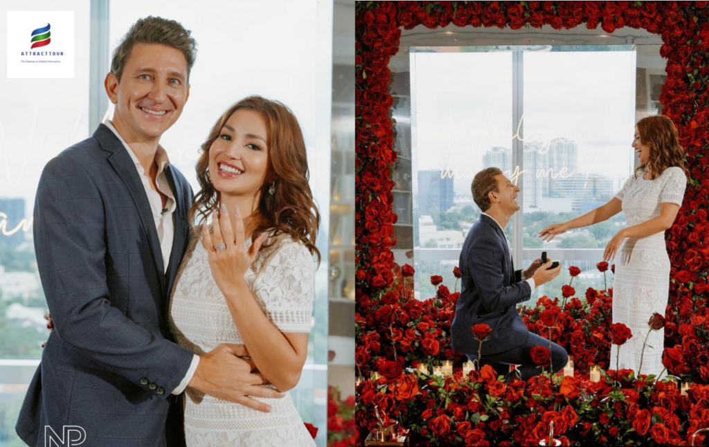 Brad surprised Nathalie with a lovely setting of countless red flowers and candles at Mirèio in Raffles, Makati. A glowing sign on the window asked, “Will you marry me?”
