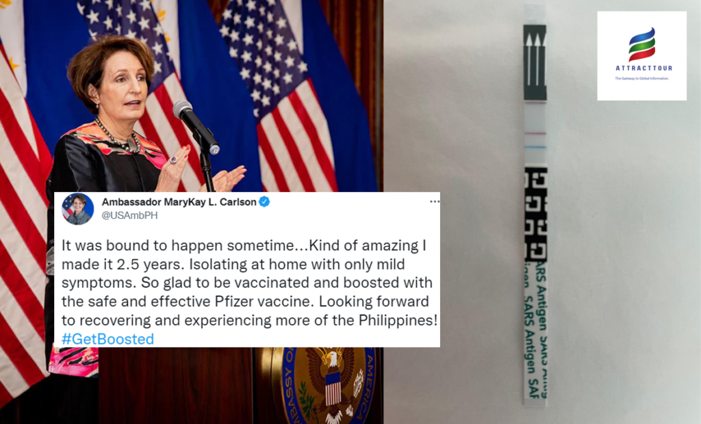 The US Ambassador to the Philippines, MaryKay Carlson, tested positive for COVID-19. Carlson tweeted a photo of her diagnostic strip and stated that she was isolating herself at home due to minor symptoms.