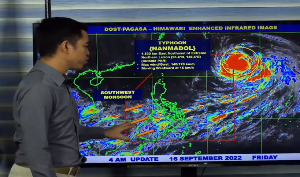 “Walang direct effect itong kabuuan, bagamat malawak itong si Typhoon Nanmadol sa malaking bahagi ng ating bansa, and yung habagat o yung southwest monsoon ay unti-unti pa rin pong pinalalakas nitong si Bagyong Nanmadol dito po sa Southern Luzon, Visayas, at western section of Mindanao ”