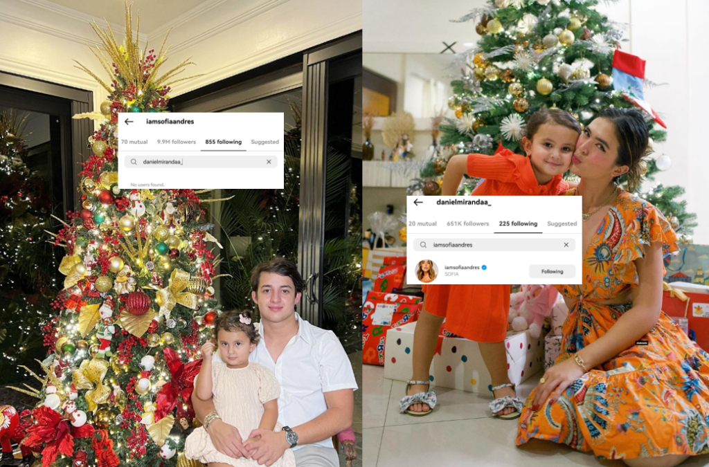 In May of this year, users observed Sofia Andres and Daniel Miranda had unfollowed each other on Instagram. The unfollow issue has resurfaced this Christmas season.