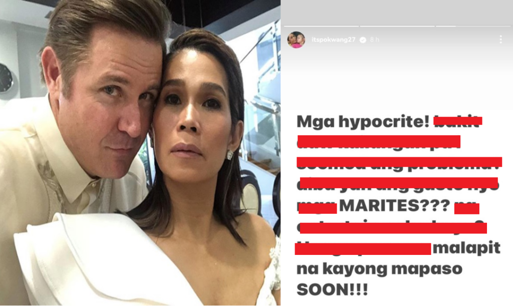 “Mga hypocrite! Bakit daw kailangan pang i-socmed (social media)? Di ba yan ang gusto nyo mga MARITES? Na entertain na ba kayo? Husga pa more malapit na kayong mapaso SOON!!!,” Pokwang stated in her Instagram story.