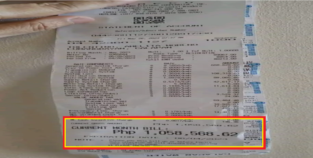 In a shocking publication, a lady customer recently published her electricity bill, which totaled more than P1 million.