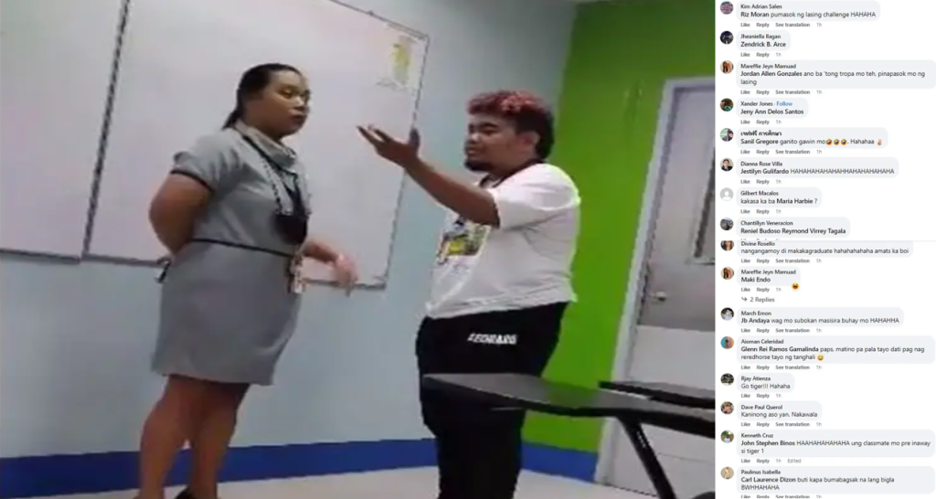 The Facebook group “Taong Putik” recently released video footage of a college student who came out laughing after a female teacher ordered him out of the classroom. The footage drew a variety of responses from the internet community.