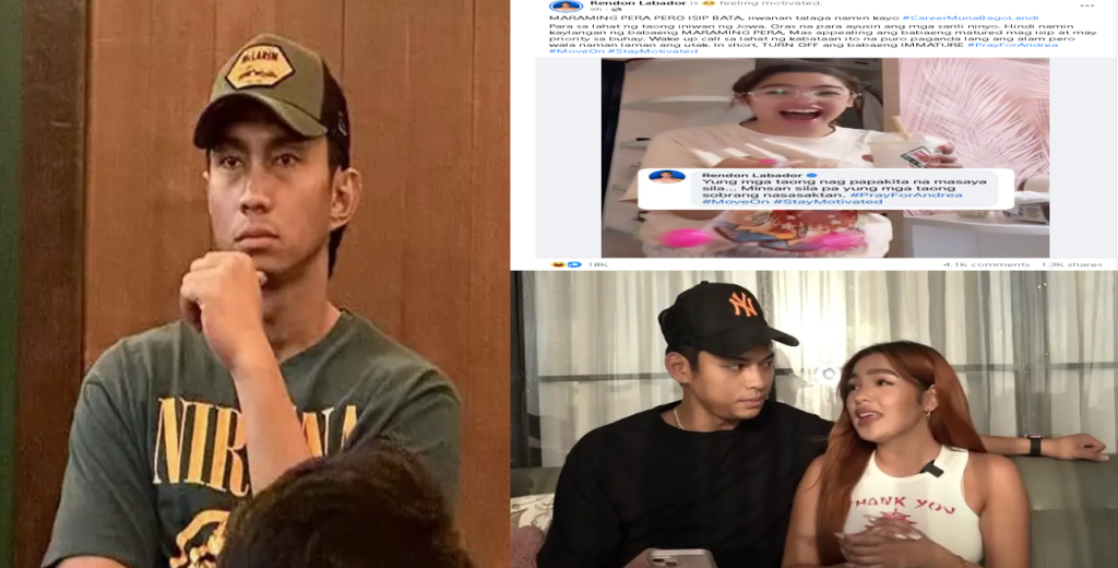 Rendon Labador, a self-proclaimed motivational speaker, left Andrea Brillantes a note that said, “MARAMING PERA PERO ISIP BATA.”