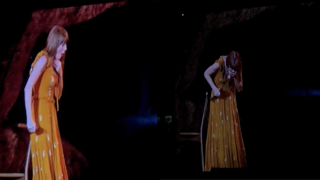 The 33-year-old Swift spun around to hide her mouth as she coughed while introducing the newest member of her band, pianist Karina DePiano. “I just swallowed a bug. I’m so sorry,” videos from the performance purport to show her saying “I’m so sorry” to the audience.