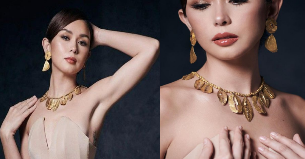 A cultural critic told Beauty that the centuries-old gold necklace and earrings she’s wearing originated from “excavated eye and mouth covers from distant places like Butuan and Surigao.”