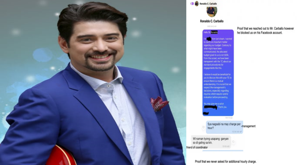 According to Carballo, the actor’s road manager requested a large amount of money (P500,000) as a talent fee for the actor’s two-hour parade participation at the Tarlac Festival, as well as a yearly payment. Apart from that, it was alleged that the actor requested to have a float assigned just for him.