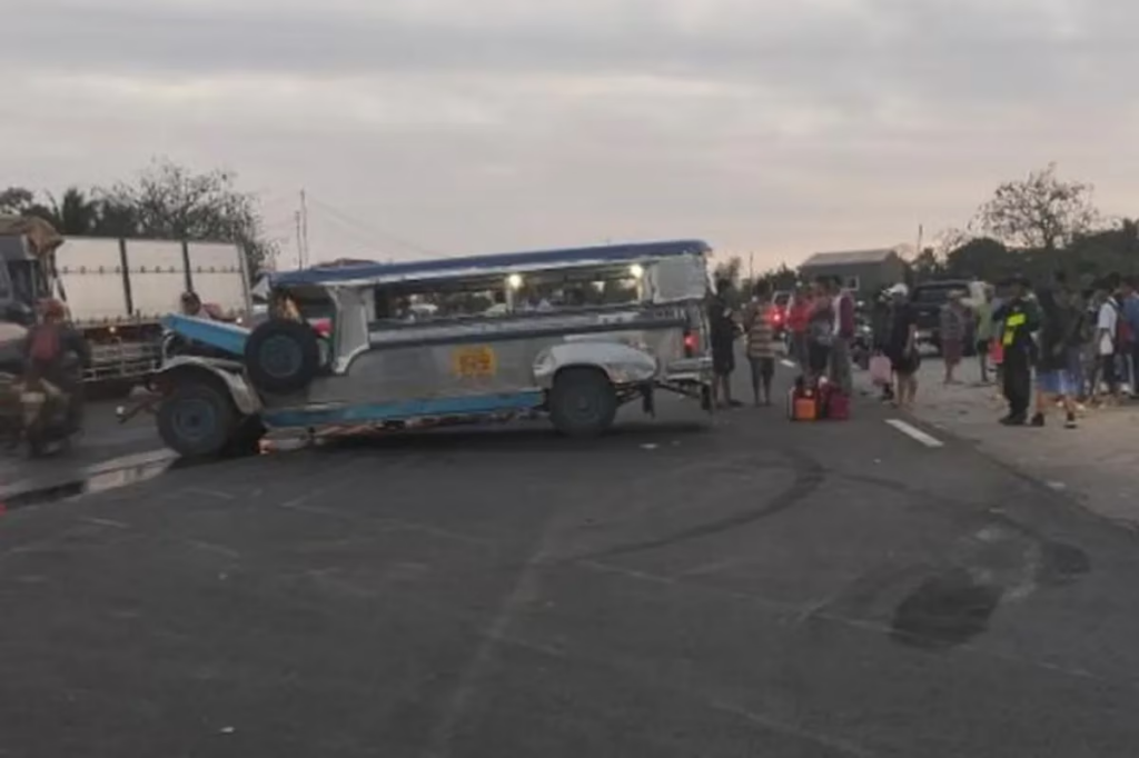 At 5:30 a.m. on Thursday, a passenger jeepney, a pickup, and a tricycle collided on the bypass route in Barangay Banaba, San Pascual, Batangas, injuring sixteen people.
