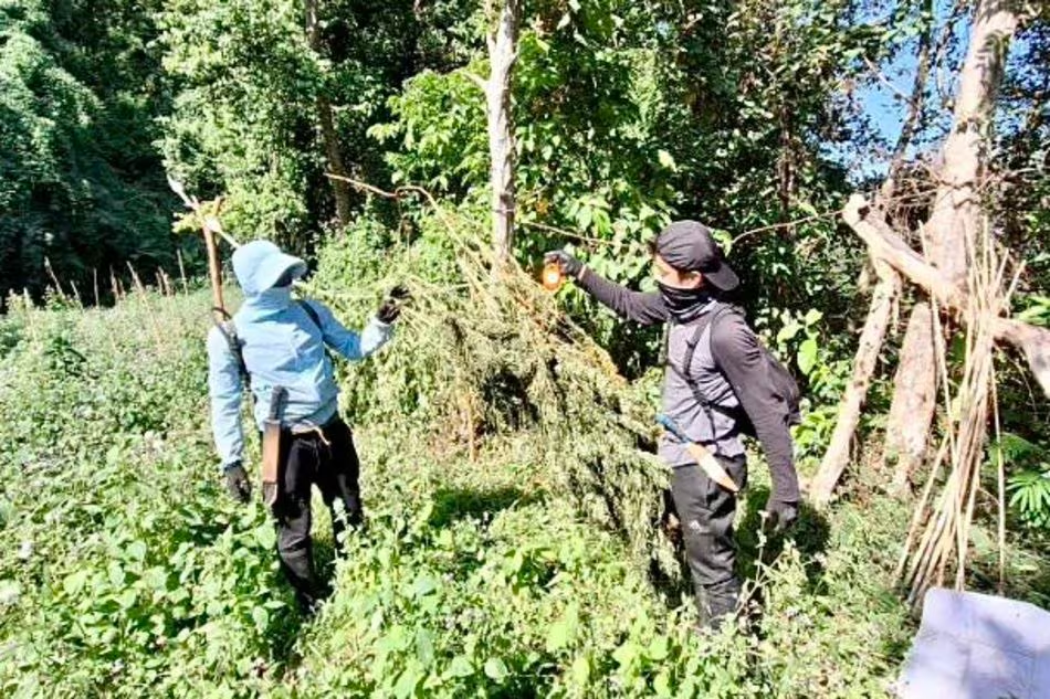 The PNP reports that in a nearby communal forest, 190,000 grams of dried marijuana stalks and leaves with fruiting tops were found and destroyed.