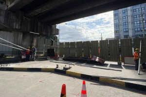 MANILA — Fences surrounding a renovated section of the EDSA Busway collapsed due to strong …